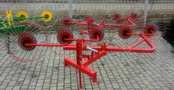 Страна-производитель: Турция Состояние: Новое Тип тракторных грабель: Грабли-ворошилки Цена договорная Грабли-ворошилки турецкие 5-колесные осуществляют сгребание в валки проявленной травы из прокосов, ворошения и оборачивания. Изготовлены из высокопрочной стали, имеют утолщенную раму и длинные толстые спицы. К раме на подшипниках крепятся 5 колес диаметром - 142 см.